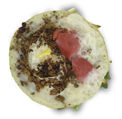 Nikmati surabi dengan 3 topping favorit pilihanmu! Manis, gurih, atau pedas, kamu bebas bereksperimen sesukamu. Mau Fla Coklat, Keju, dan Oreo? Atau Telur, Kornet, dan Mozzarella? Semua bisa! Cocok buat kamu yang nggak mau ribet pilih satu rasa aja.